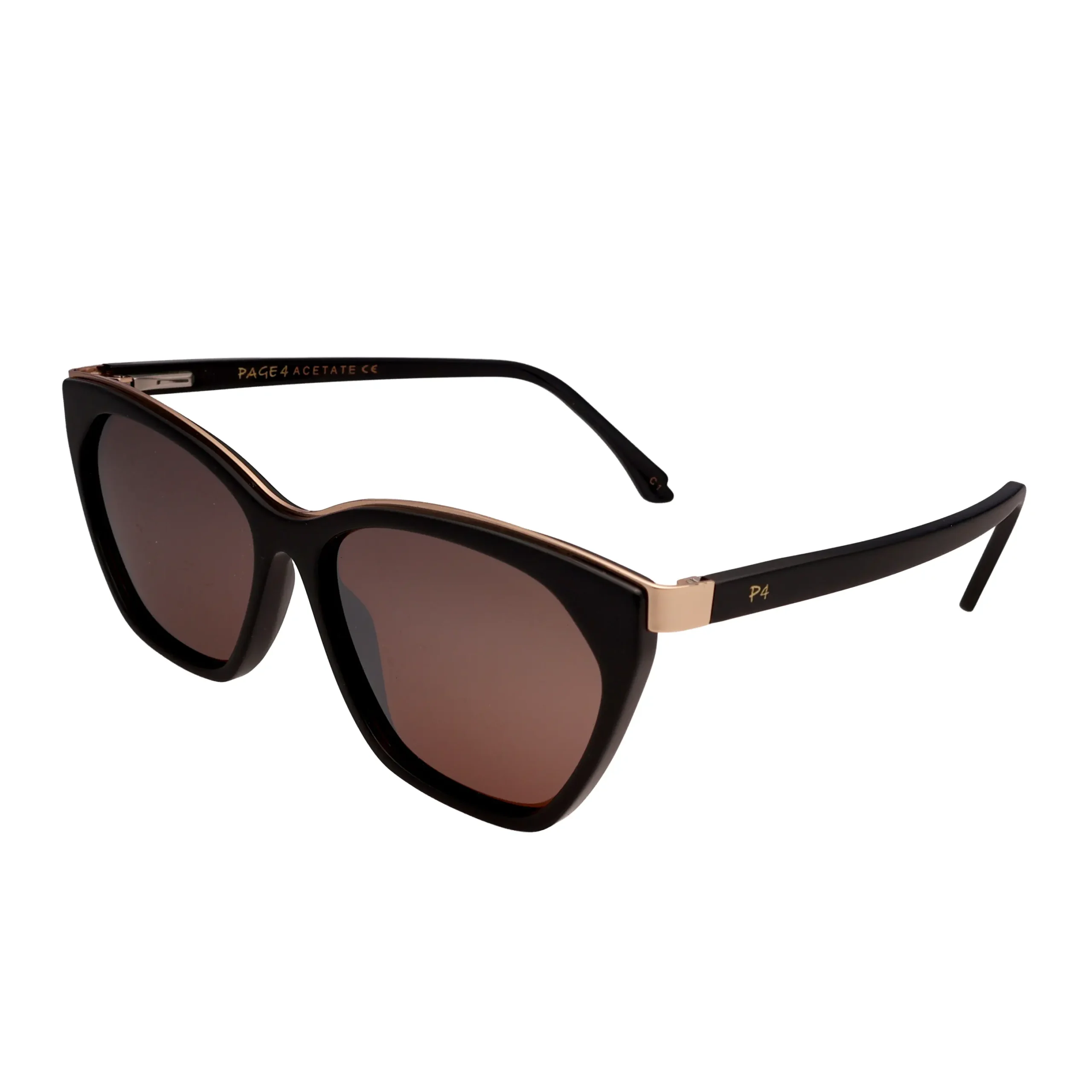 PAGE 4 SUNGLASSES CAT EYE PA178 SHINE BLACK WITH BROWN GLASSES