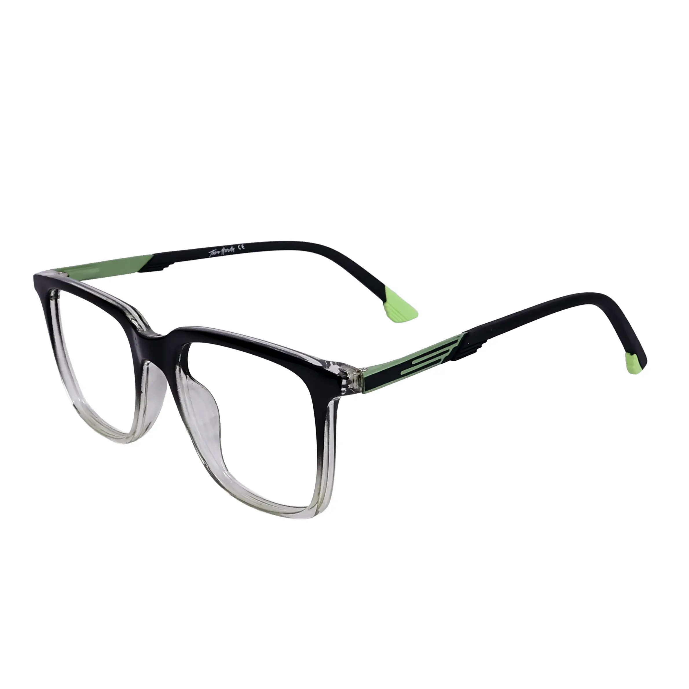 TOM HARDY RECTANGLE FRAME 135021 SHINE BLACK WITH TRANSPARENT GREEN AND BLACK TEMPLE