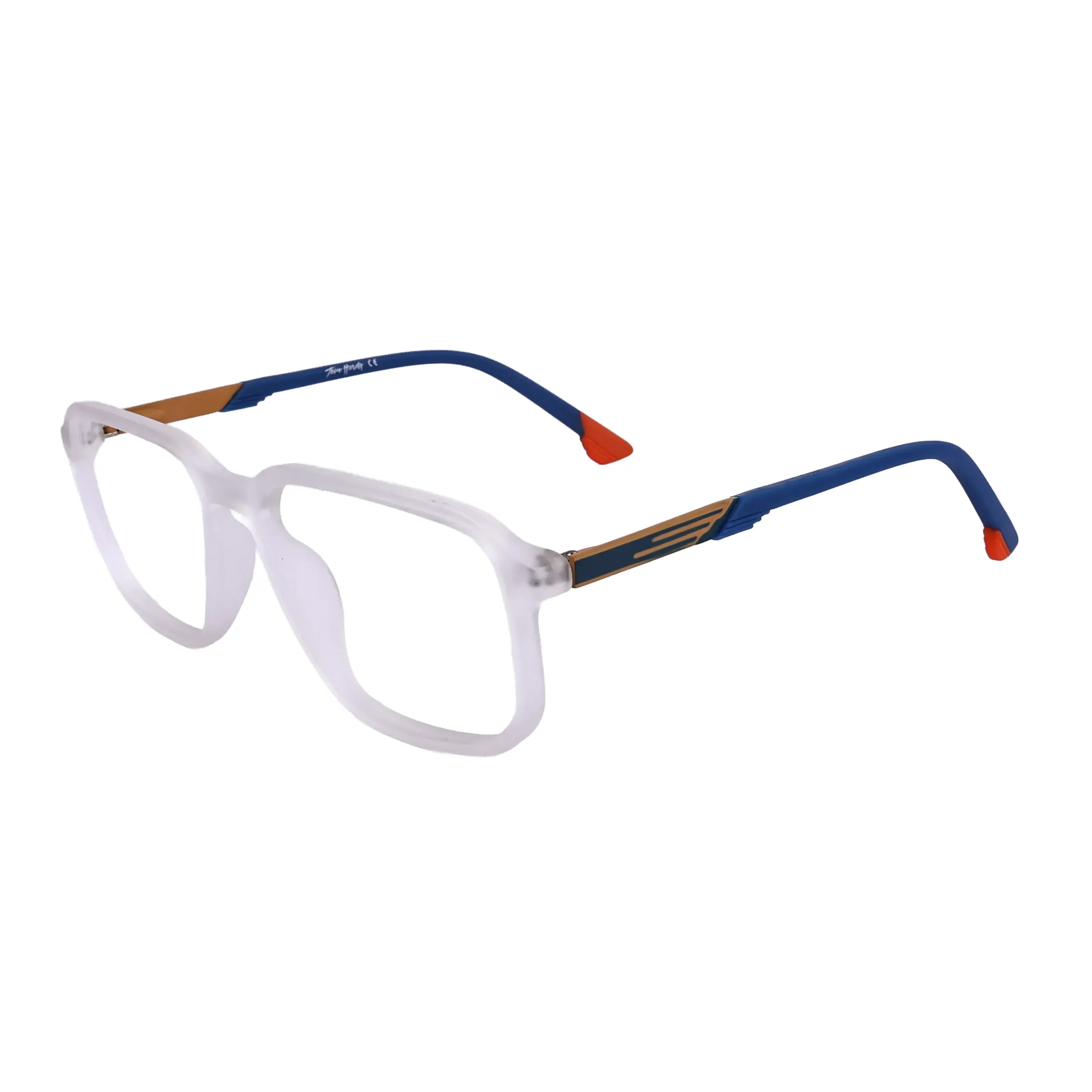 TOM HARDY RECTANGLE FRAME 135025 MATT WHITE WITH BLUE METAL TEMPLE